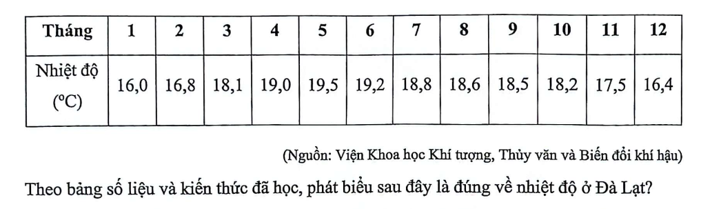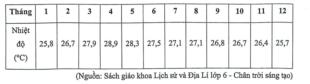 Theo bảng số liệu và kiến thức đã học, phát biểu sau đây là đúng về nhiệt độ của Thành phố Hồ Chí Minh?