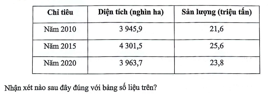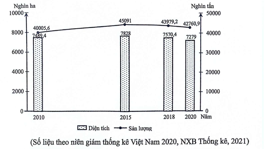 Cho bảng số liệu sản lượng lúa gạo và thịt bò của Nhật Bản giai đoạn 2000-2020: