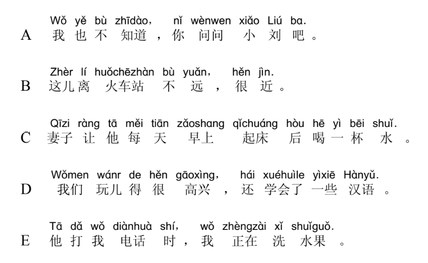 Đề thi thử HSK 2 (Đọc) - Đề 5