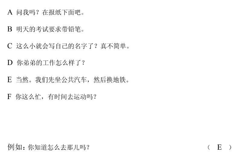 Đề thi thử HSK 2 (Đọc) - Đề 1