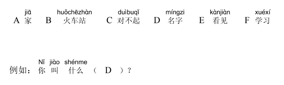Đề thi thử HSK 2 (Đọc) - Đề 1