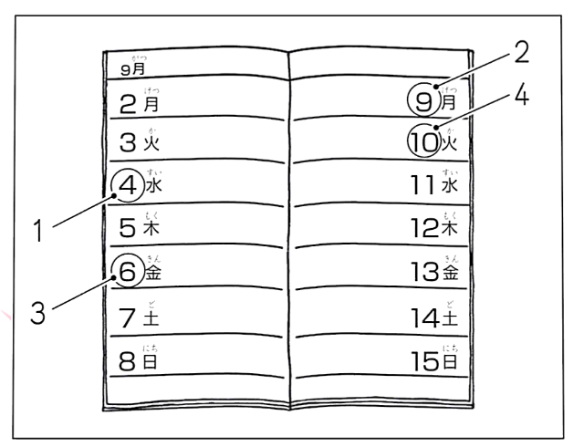 もんだい4には、えなどがありません。まずぶんを聞いてください。それから、1から3の中から、ただしいこたえをひとつえらんでください。