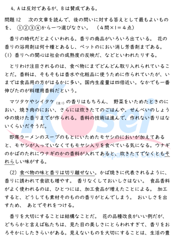 次の文章を読んで、後の問いに対する答えとして最もよいものを、①②③④から一つ選びなさい。