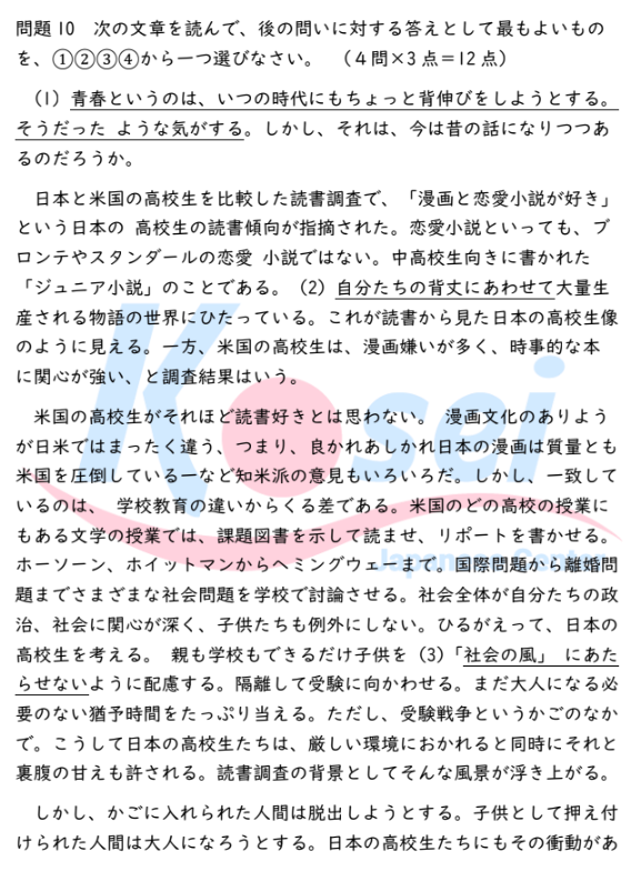 Câu 10: (1)に入る最も適当なものはどれか。