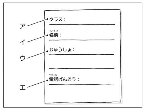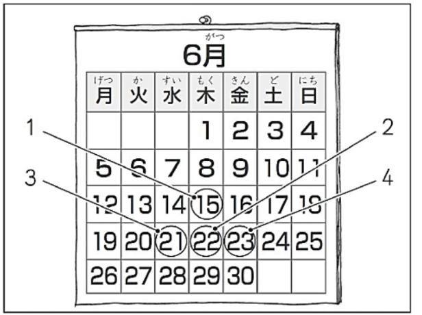- の ことばは ひらがなで どうかきますか。1・2・3・4から いちばん いい ものを ひとつ えらんで ください。