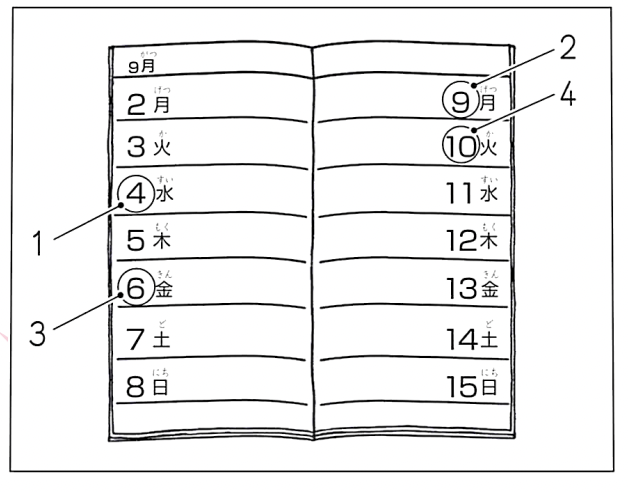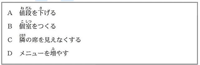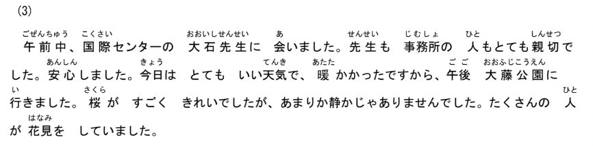 もんだい4には、えなどがありません。まずぶんを聞いてください。それから、1から3の中から、ただしいこたえをひとつえらんでください。